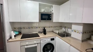 Cuenta con un amplio salón-comedor con gran ventanal, cocina independiente totalmente amueblada, dos dormitorios con armarios empotrados y aire acondicionado instalado. Se entrega totalmente amueblado.