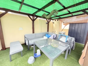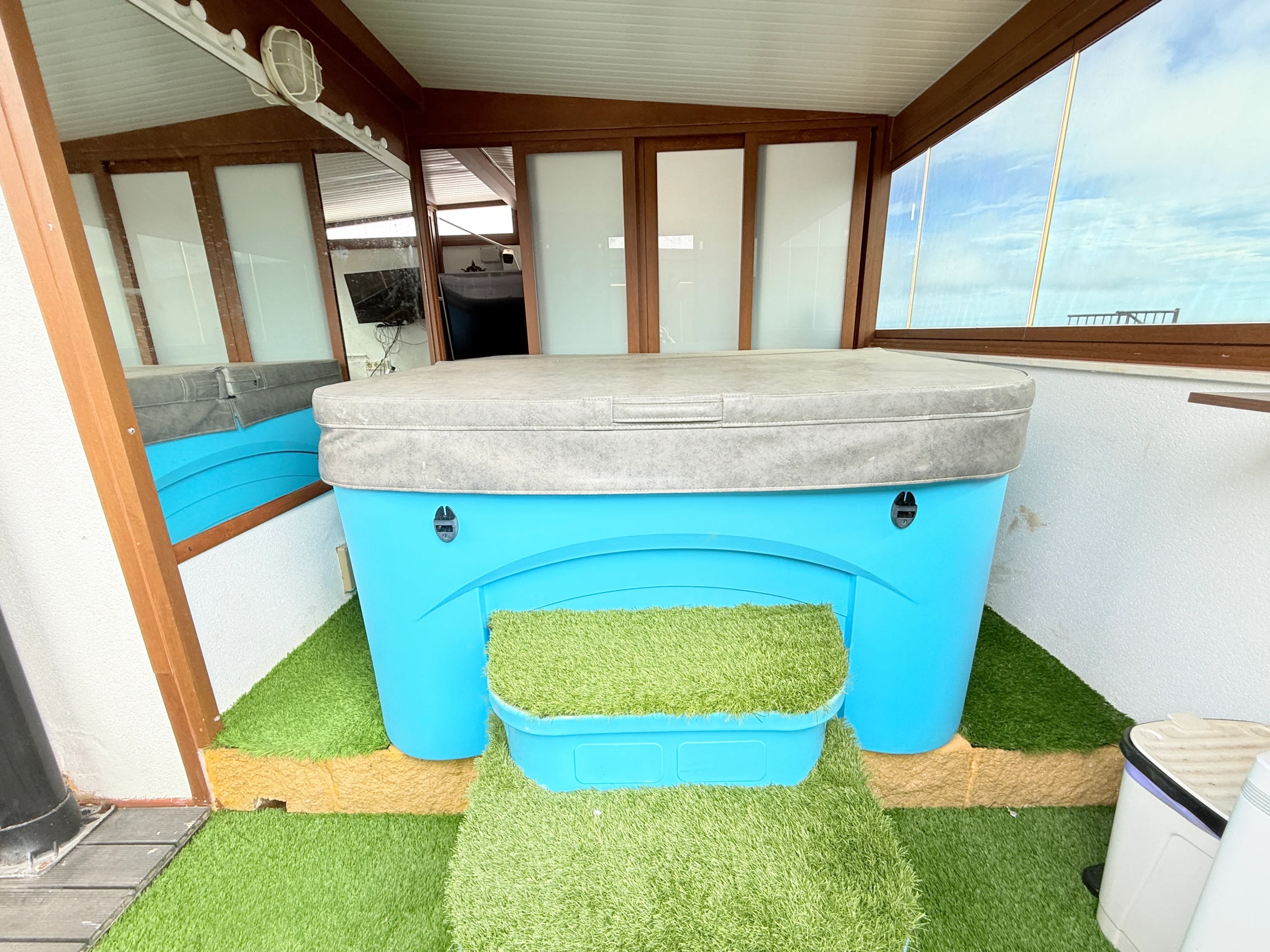Impresionante solárium de 100 m² equipado con jacuzzi, zona de barbacoa y un dormitorio de invitados adicional con baño privado.